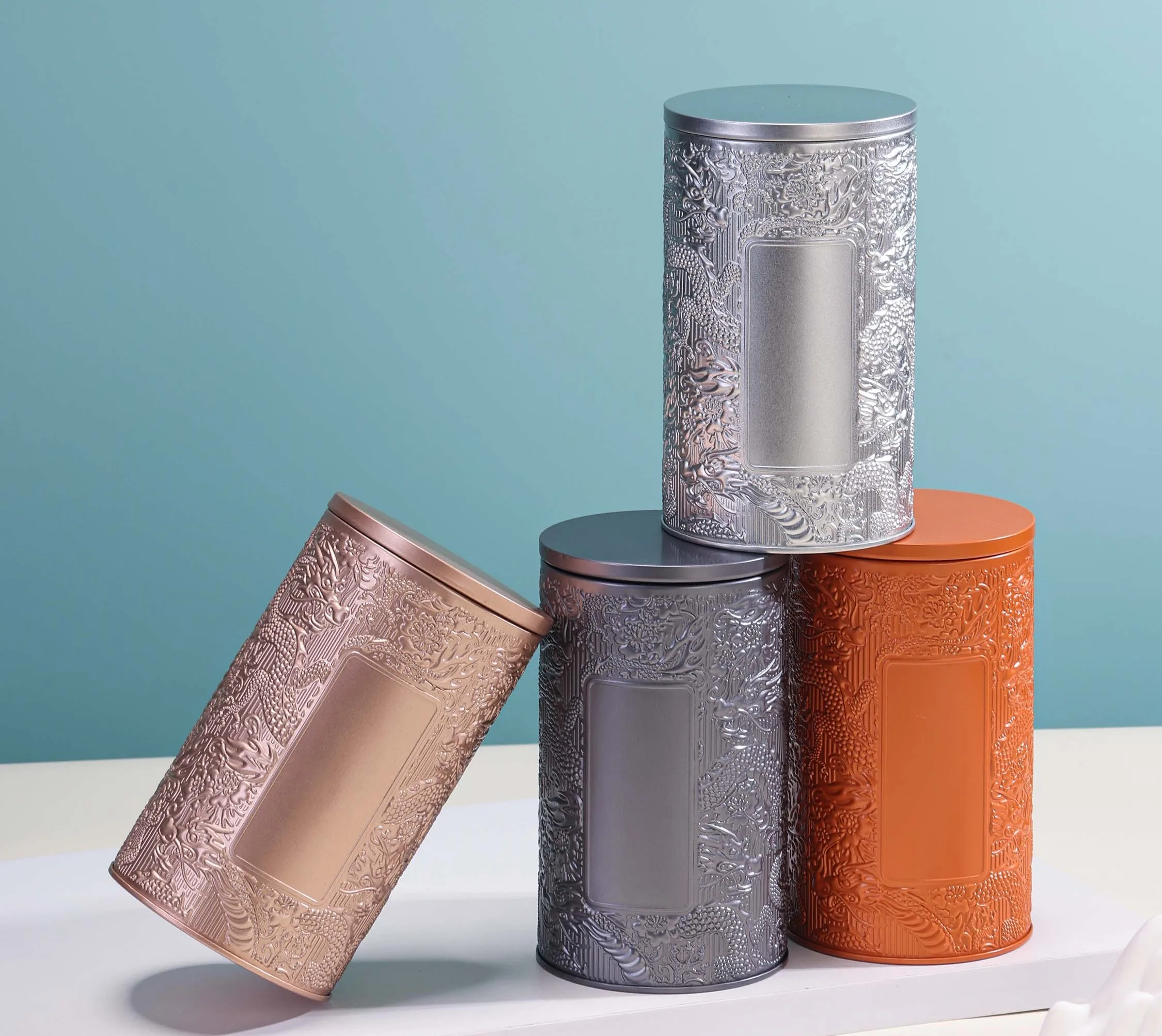 Four Color Artistic Carving Round Tinplate Metal Can Gift Box for Cookie Candy Food Tea Candle Packaging